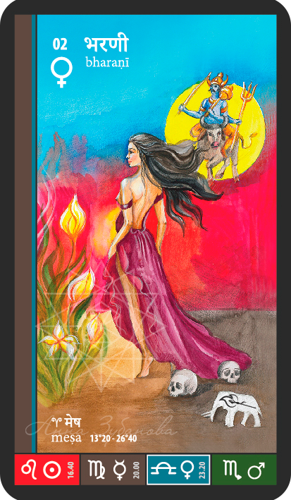 В данном уроке рассматривается уникальный код созвездия Бхарани, который вписан в образ Богини на астрологической карте колоды «TAARA»